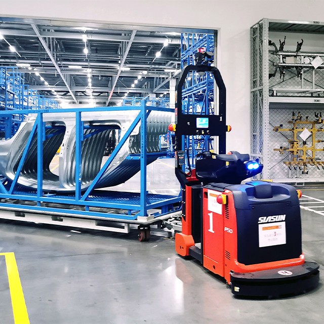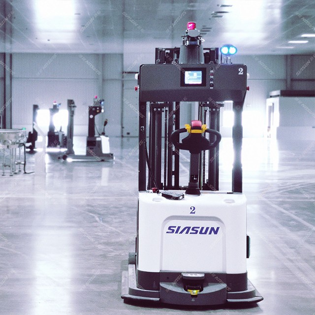 新松叉式移动机器人具备叉车的各项功能,一般采用主流叉车的本体进行改造,保持其原车的结构和刚性,加装控制、导航、通讯等,多用于车间内无人物流作业需求。根据不同的负载及举升高度选择对应的叉车本体,导航方式一般选择磁导航、激光导航或混合导航。