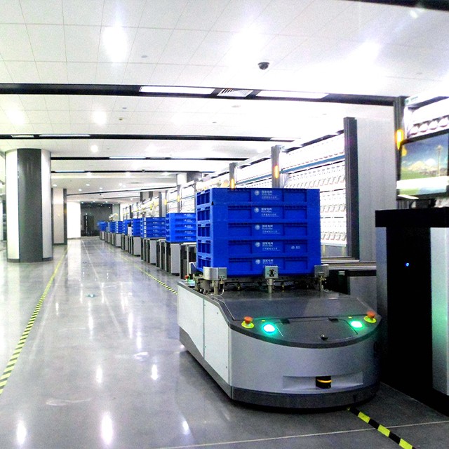 仓储式机器人是新松公司为满足大型仓储厂房车间的货架调配、分拣、整合二研发的智能应用系统,主要由AGV车体和视觉导航传感器等组成,仓储式机器人将装满货物的货架举起并快速平稳的将货架运送到指定的地方等待下一次任务。可在控制台的调度下将货架上面的货品进行分类排序,将同类商品集合到同一货架上,这样可以减少货物的运送时间,从而大幅度提高仓储效率。