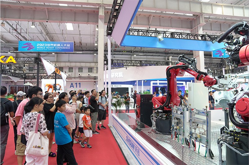 ▲ 北京世界机器人大会现场,新松受到了社会各界的广泛关注