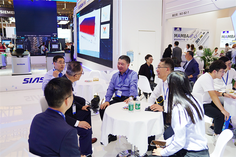 ▲ 合作伙伴、友商代表莅临新松展位洽谈交流