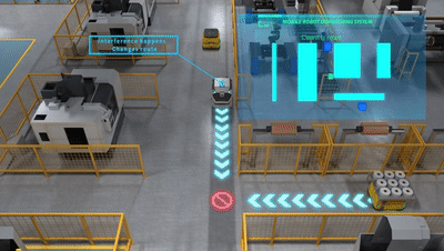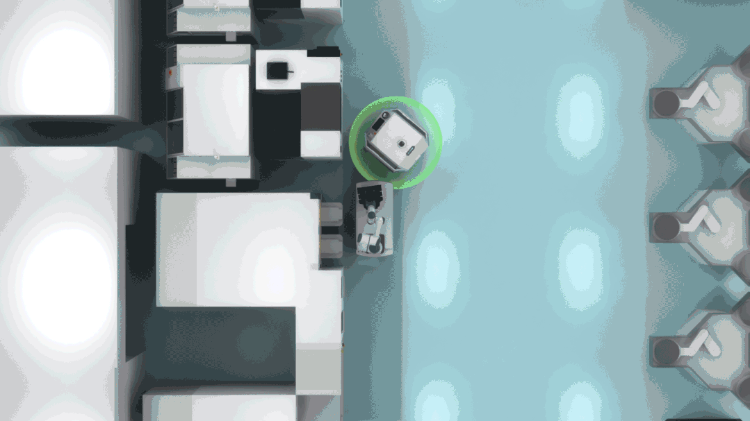图:调度系统协调清洁机器人0转弯半径,合理避让产线移动机器人
