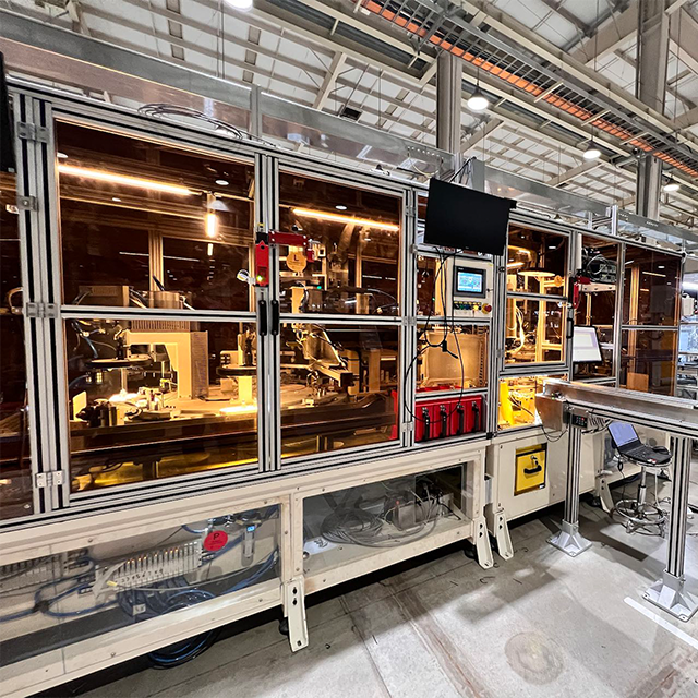 2.汽车座椅调角器激光焊接系统,融合了包括角焊、叠焊、拼焊等多种激光焊接工艺。标准调角器激光焊接工作站,搭建新松标准快换夹具,系统可存储上百套夹具配方,最大程度满足设备频繁换型的生产需求;