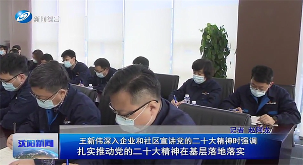 10月28日上午,辽宁省委常委、沈阳市委书记王新伟深入企业和社区,向企业一线职工、社区工作者和基层党员干部群众宣讲党的二十大精神。