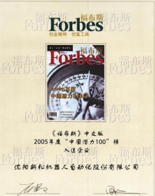 ★新松公司上榜《福布斯》中文版排名“中国潜力100榜”第48位。