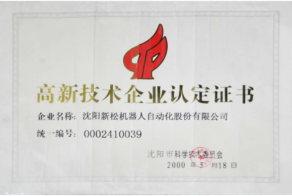 ★国家发改委、科技部、财政部、海关总署及国家税务总局共同发布的2007年第58号公告中,新松公司技术中心名列国家认定的75家企业技术中心其中,并由国家发改委颁发“国家级企业技术中心”牌匾。