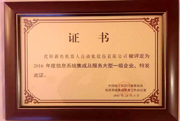 ★2016年12月,新松公司获得信息系统集成大型一级企业。